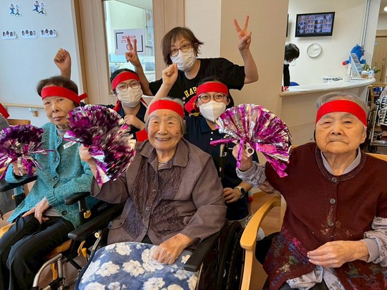 深水さんに負けじとみなさまは、昔のディスコで流行った扇子のような物を片手に体操です♬