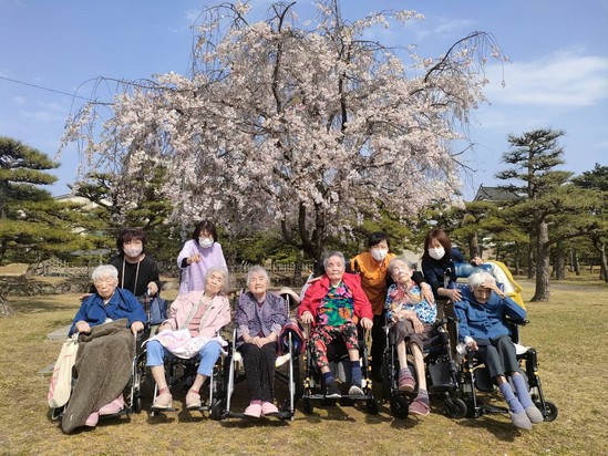 4月 お花見イベントで栗林公園まで遠出をし、ご家族様も一緒に満開の桜を楽しみました✿