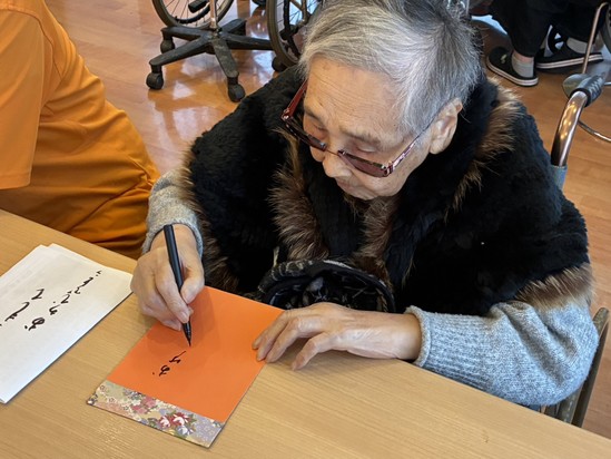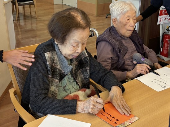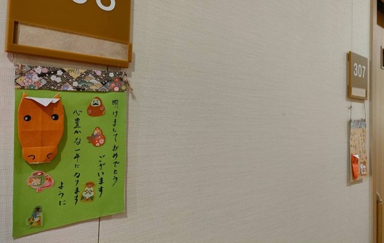 みなさまの書初め作品に可愛らしい馬さんが加わって、居室入口のリースとなりました(*´ω`*)