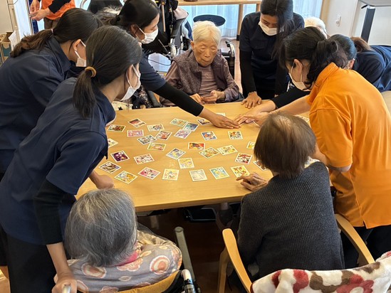 ミャンマー出身の特定技能生たちにとっては、初めて見るかるたに興味津々(≧▽≦)