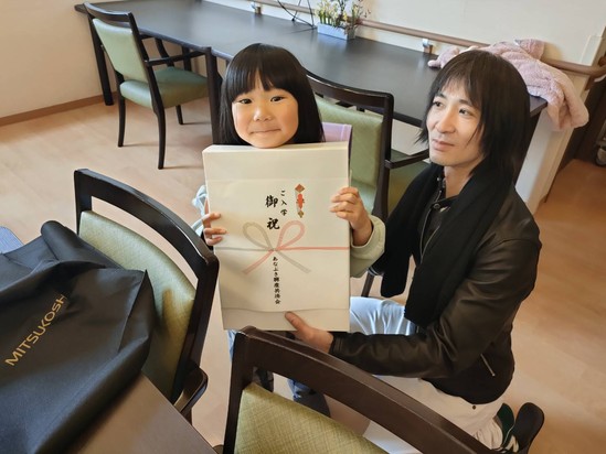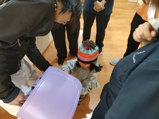 今回は看護スタッフの片山さんの娘さんの莉榎(りか)ちゃんが、今春小学校に入学されるので、ランドセルの贈呈式がありました。