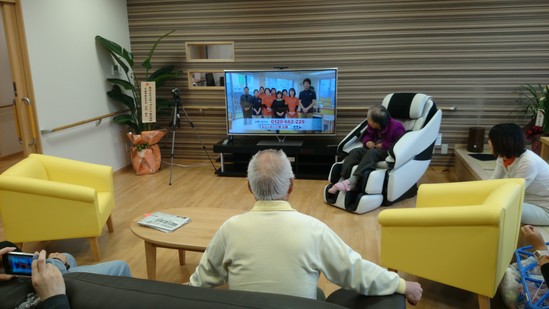 娯楽室で入居者様、スタッフ全員でチェックしました