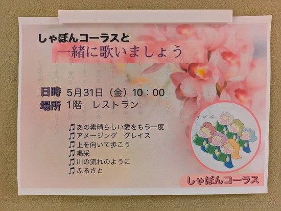 ボランティアで「しゃぼんコーラス」の方々が来てくださいました