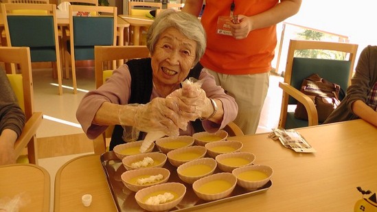 材料をミキサーにかけて器に移す作業も手伝っていただきました。