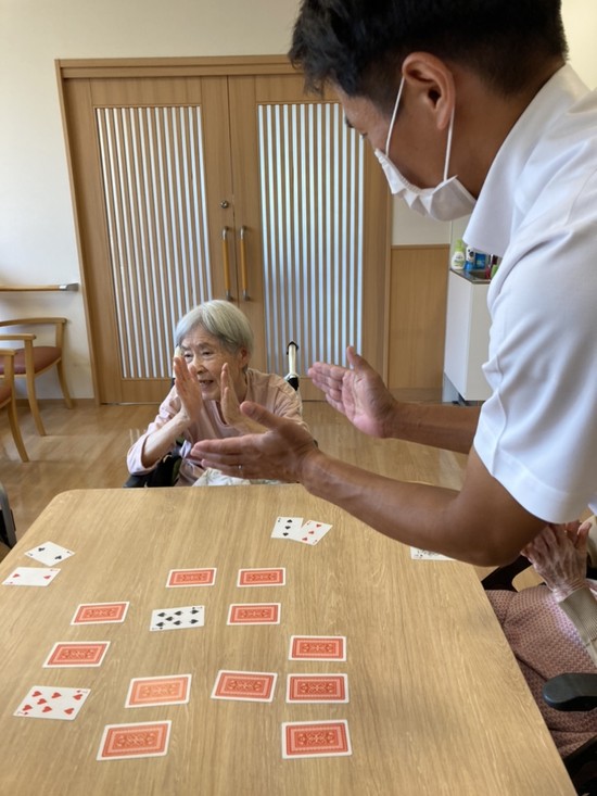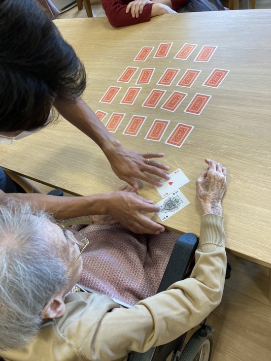 今日の午後は、入居者様と一緒にトランプの「神経衰弱」を楽しみました。