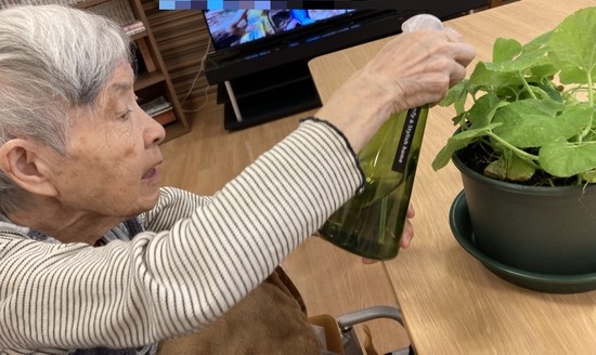 入居者様と一緒にメロンの苗を育てています。