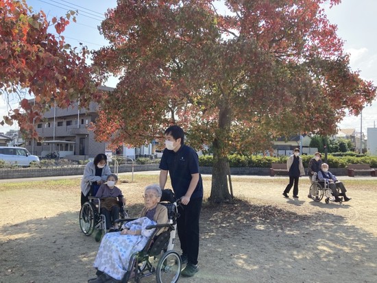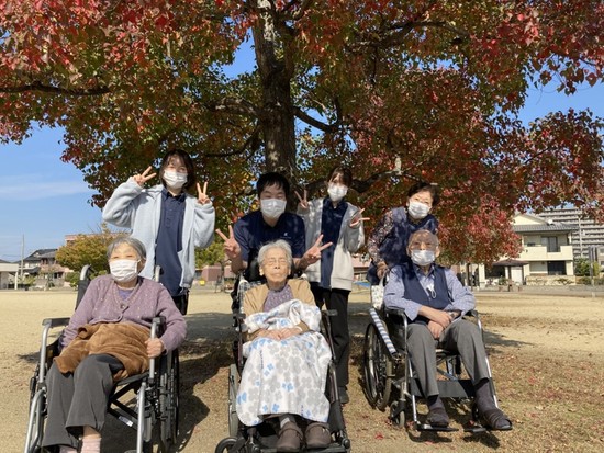 いいお天気で外に外出もでき、利用者様も明るい笑顔をみせてくださいました