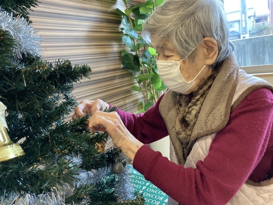 入居者様と一緒に1年ぶりにツリーの飾り付けを行いました。