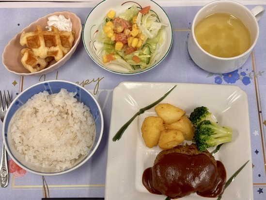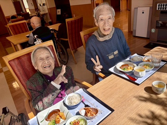 彩りのあるメニューに、皆さま「今日は豪華だね」「きれいで食べるのがもったいない」と笑顔を見せてくださり、食堂はとても和やかな雰囲気に包まれました。