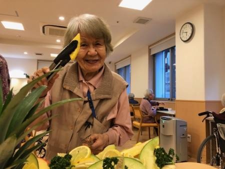K様、普段はあまりが進まない時もありますが、今日は果物から目を離さず