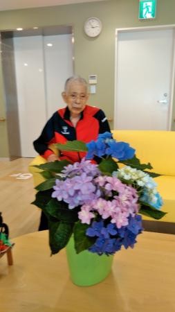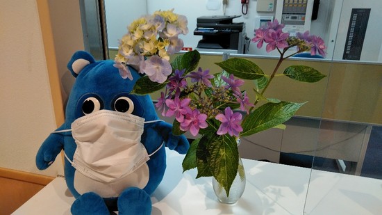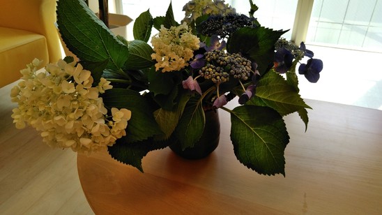 スタッフのMさんがご実家に咲いていた紫陽花を持って来てくれました