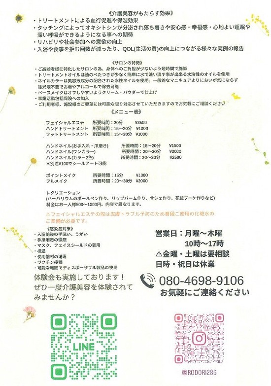 介護美容サロン~彩り~様 のパンフレットはこちらです↓↓↓