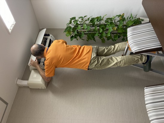 朝から、換気扇などの清掃点検を