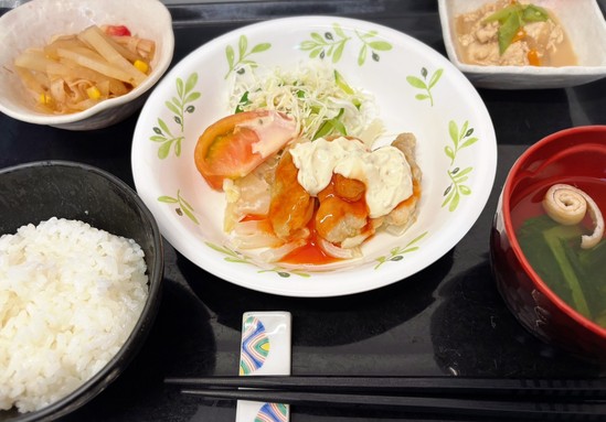 2025年09月04日(木) チキン南蛮♪ こんにちはアルファリビング鹿児島上荒田です。 先日、昼食にチキン南蛮が出ました☺☆ 野菜がたっぷりで栄養満点でした(⁎˃ᴗ˂⁎) 美味しく野菜が取れるといいですね