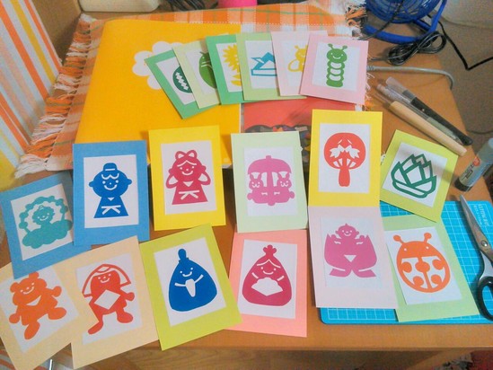 ハサミやカッターは、高齢者の方には扱いは難しいだろうし、危ないので、安全上提供できないかもしれませんが、予めこちらで用意したものを画用紙に貼ってみたり、更に他のシールを貼ってデコったりするのは、きっと楽しんで頂けると思います