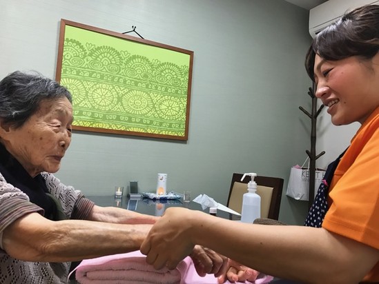 今日のディサービスはいつもと違う思考で”ハンドマッサージ”を行いました