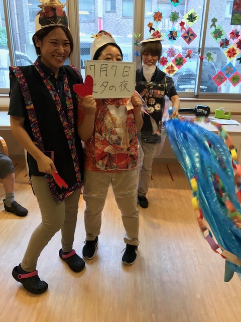 昨日のディサービスで 七夕をお題にしてお芝居が行われました