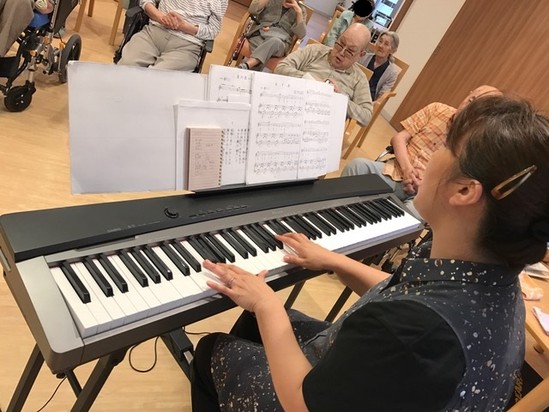 今日は藤原稔子先生をお呼びして”音楽療法”を入居者様と一緒に楽しみました