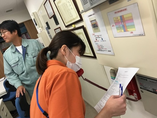 誘導する際の優先順位や誘導方法、通報連動システムの操作方法など熱心に指導を受けていました
