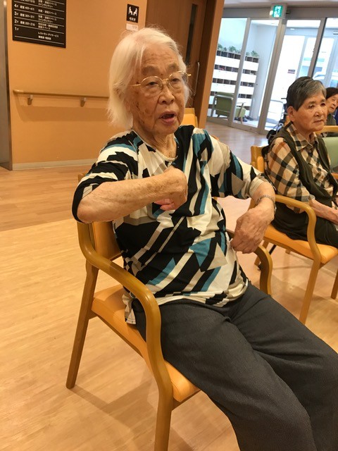 今日も元気いっぱい藤原稔子先生の大きな声で音楽療法がスタートしました
