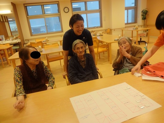 入居者様と一緒に スタッフのSさんお手製の ”すごろく” で