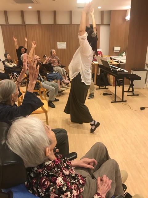 郷ひろみの『2億4千万の瞳』の曲にあわせて身体を動かします ●~*
