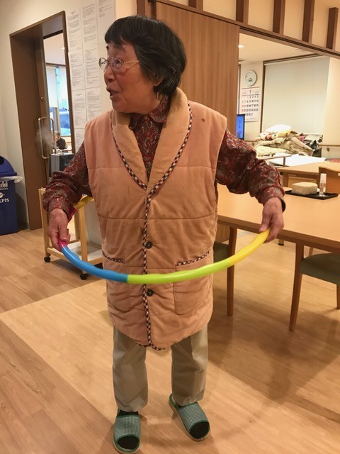 楽しそうにフラフープを回しています