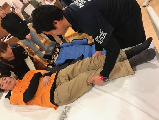 介護ベットを3台用意し 移乗介助方法の実技研修です