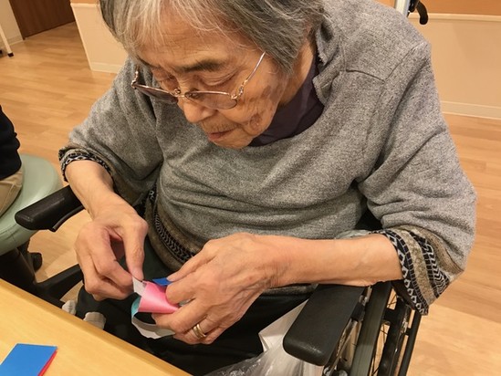 みなさんの協力のおかげで 七夕飾りを笹の葉につるすことができました
