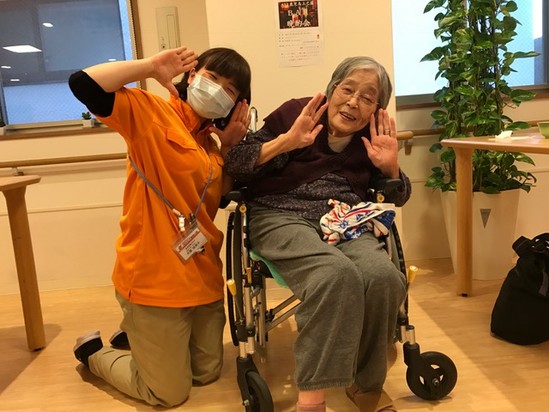 入居者様の側にしっかり寄り添い お話ししている姿に遭遇しました