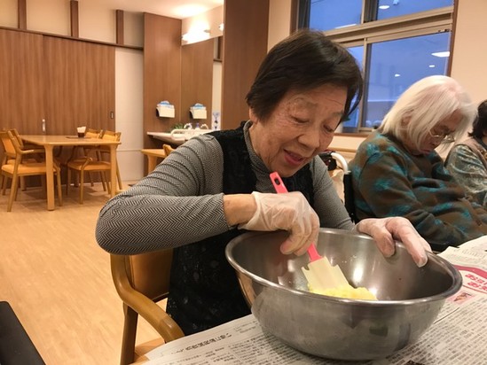 今度はY様 クリームチーズを混ぜる係に・・・クッキングお好きなんですね