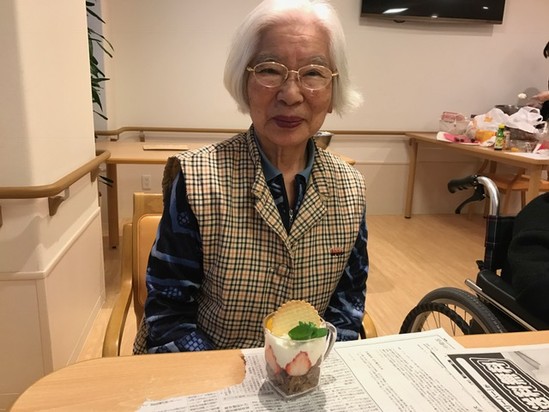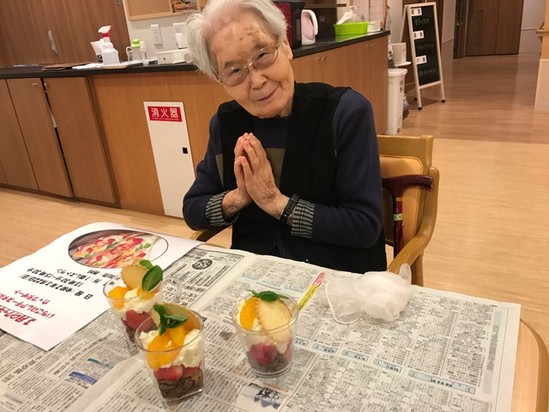 N様も 出来上がりのカップデザートを目の前に 「 はい チーズ