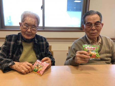 A様ご夫婦 ひなあられを持って ハイポーズ