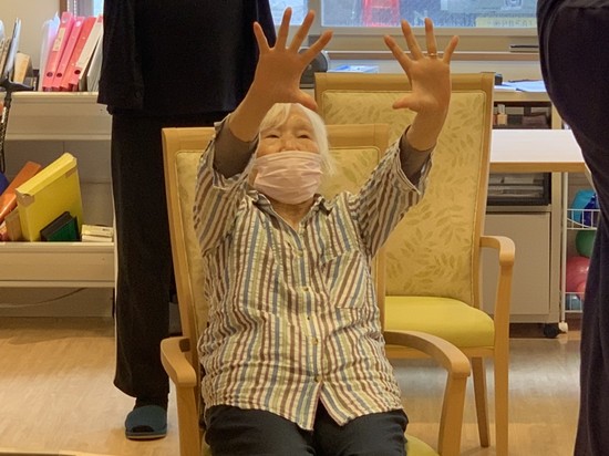曲に合わせて全身や指の体操をしたり…