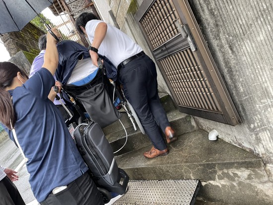 玄関前には階段があり、H様とても行けないと言われていましたが、皆で階段を上りました。