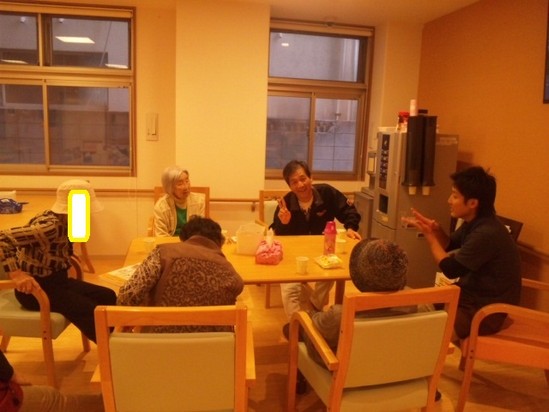 スタッフのNさんが 女性の入居者様に囲まれて (笑) (笑) (笑)