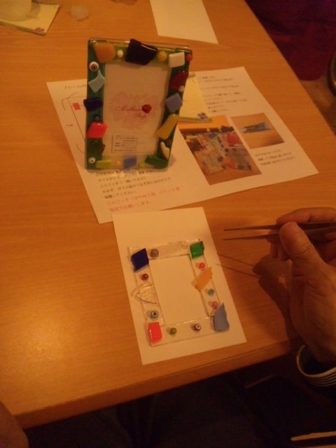 ベネチアガラスを一つずつ一つずつ 丁寧にのり付けしていきます