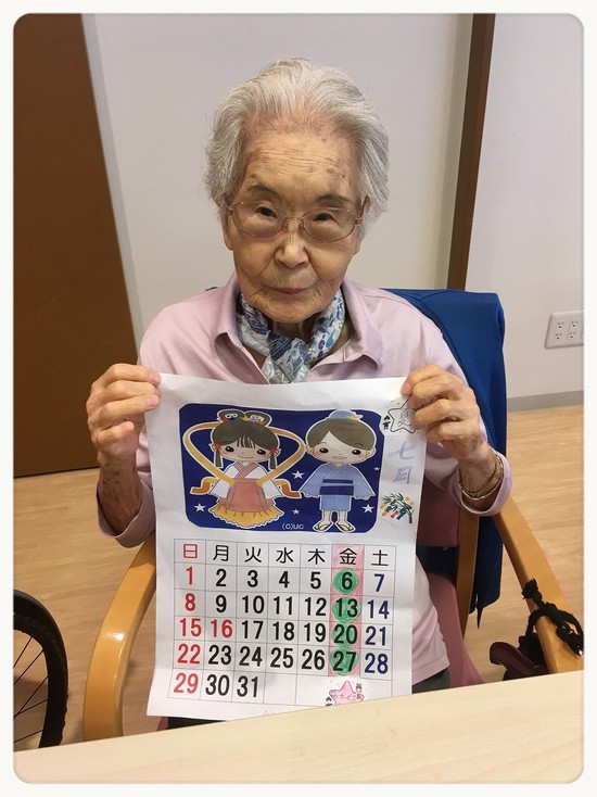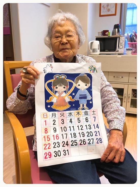 デイサービスに来る曜日のところは、彦星と織姫の洋服のデザインと同じように塗っていてとてもオシャレに完成しました