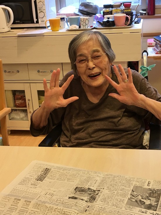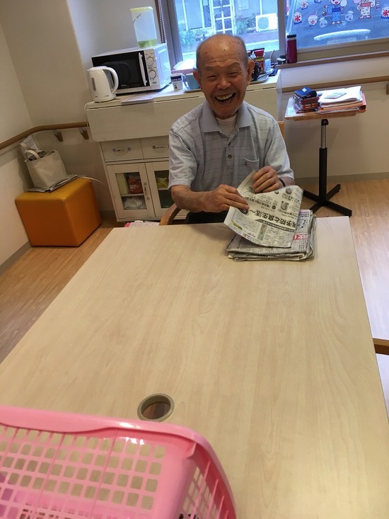 Y様は、新聞を取るのに引っ付いて苦労していましたが、利用者様が「頑張れ」と応援して下さり「よぉーし!頑張るぞ!」と言われとても楽しそうに参加して下さいました(^_^)/~