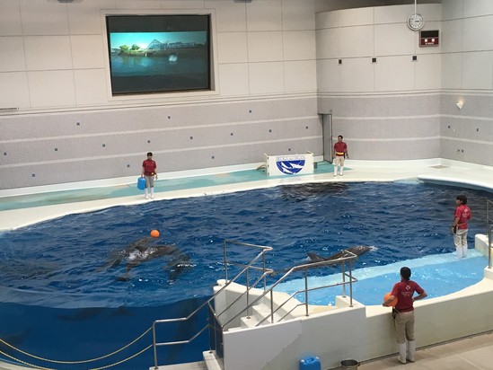 残念ながらイルカショーは時間が合わなくて見れなかったのですが、イルカが訓練している様子を見ることができました