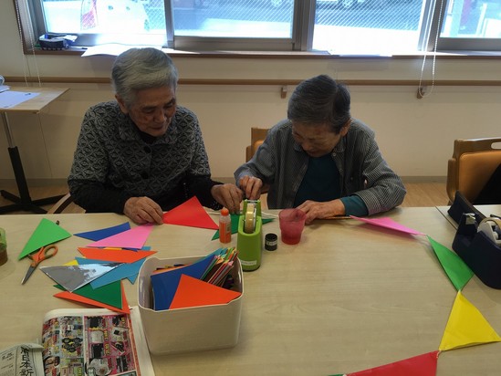 I様は「こんなの作るのは初めてで、どうやったらいいの?」と職員に聞きながら上手に三角に折ってくれました(*^_^*)