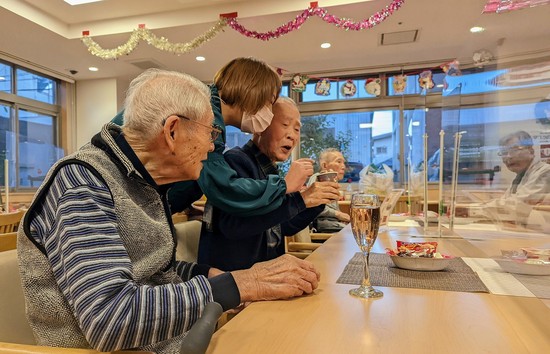 乾杯には餅田元施設長も駆けつけてくれました