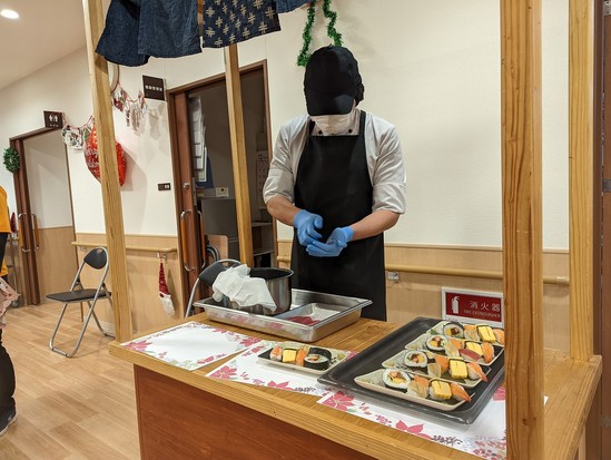 入居者様の前で寿司を握ってくださいました