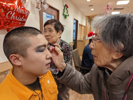 抽選で選ばれた入居者様にスタッフへのメイクをしていただきました~