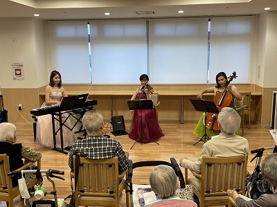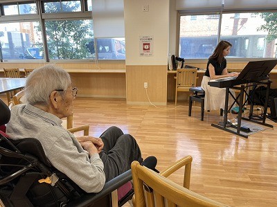 「赤とんぼ」「夕やけこやけ」の童謡がながれると、涙が流れるほど感動される入居者様もいらっしゃいました。