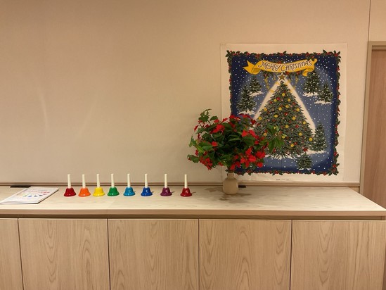2025年12月11日(木) クリスマスの装いをはじめました! あなぶきの介護 有料老人ホーム アルファリビング京都北山 ***** 12月に入ってめっきり寒くなってきましたね。 冬のイベントといえばクリスマスですが、 アルファリビング京都北山もクリスマスの装いを始めました! クリスマスツリー、サンタクロース、 ハンドベルにキルト を飾らせていただいています。 施設内の雰囲気もとてもキラキラしています 寒さに負けように頑張っていきましょう!!!