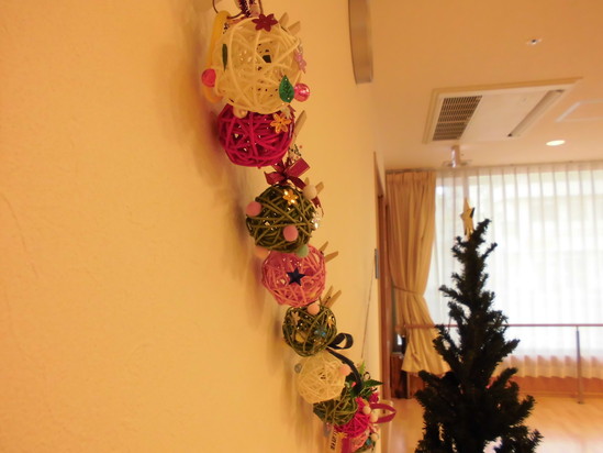デイでは先週、手作業レクとして、クリスマスのオーナメント作りを行いました。