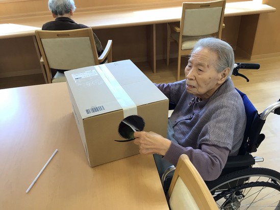 先月スタッフよしださんが段ボウルを一生懸命くり抜き作業してまいたが・・・