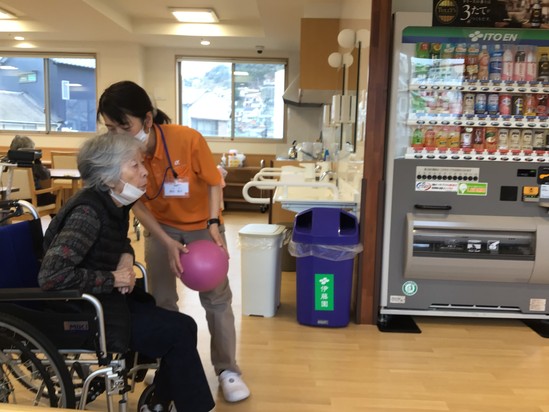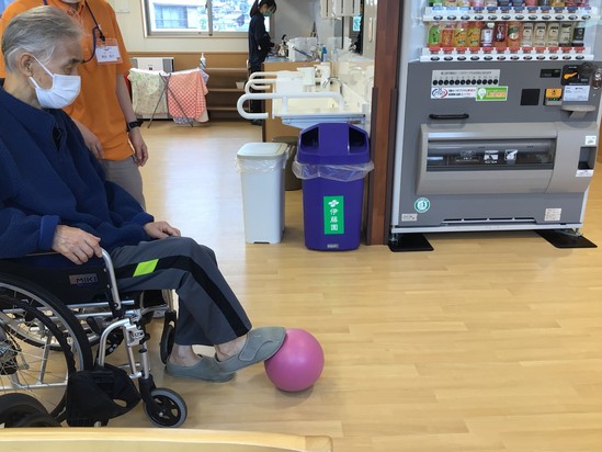 日曜日恒例の全体レクレーション!今回は、ゴムボールをどのくらい蹴れるか競争しました