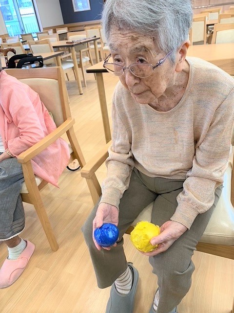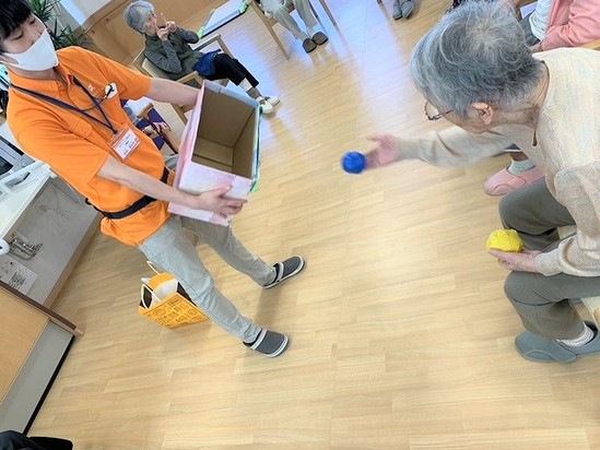 みんなで作った球を箱に投げ込む【玉入れ】をしました